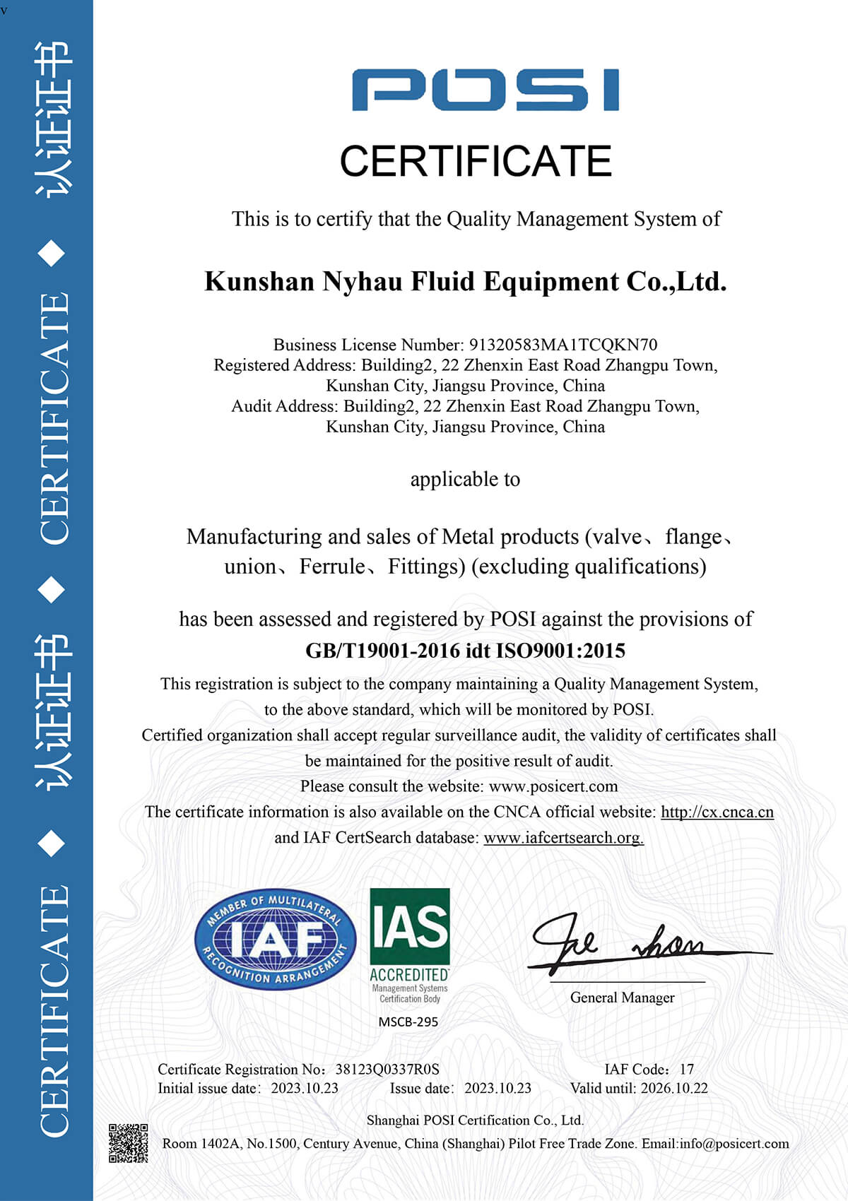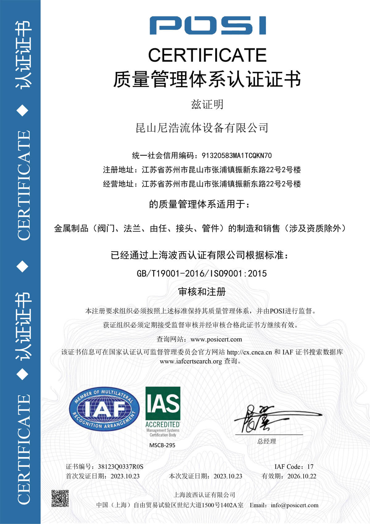 ISO9001:2015证书